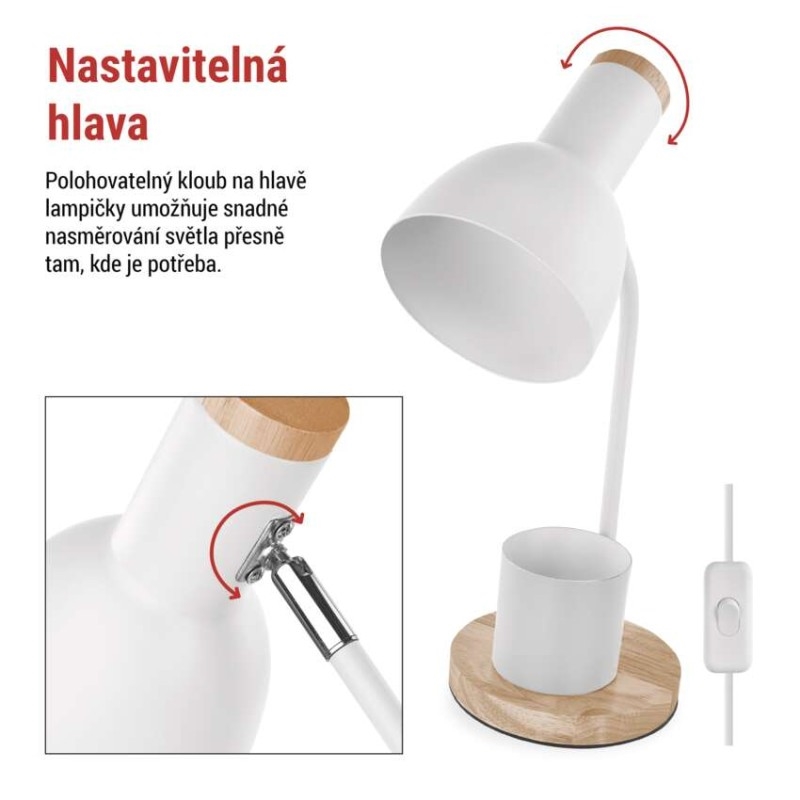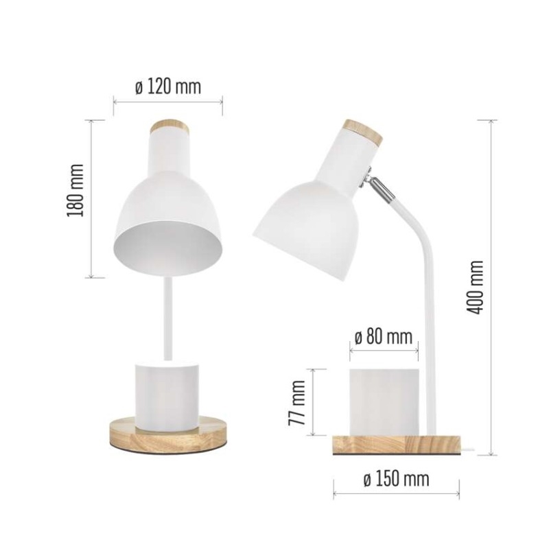 barva: bílá|barva světla: –|činitel stárnutí: –|čip LED: –|délka přívodního kabelu: 1,5 m|energetická třída: –|energetická třída (od 1.9.2021): –|index podání barev (CRI): –|integrovaná nabíjecí baterie: ne|krytí: IP20|materiál: kov + dřevo|max. výkon: 25 W|napájecí zdroj: 220–230 V|napájecí zdroj součástí balení: –|napětí: 220–230 V AC|obsah rtuti: –|patice (uchycení žárovky): E27|počet LED: 0|počet spínacích cyklů: 10 000|příkon: 25 W|prodejní obal: 1 ks, krabice|rozměr: 150 × 150 × 400 mm|rychlost náběhu na 100 %: –|stmívání: ne|světelný tok: –|teplota chromatičnosti: –|typ napájení: síť|účiník: –|USB port: ne|životnost: –