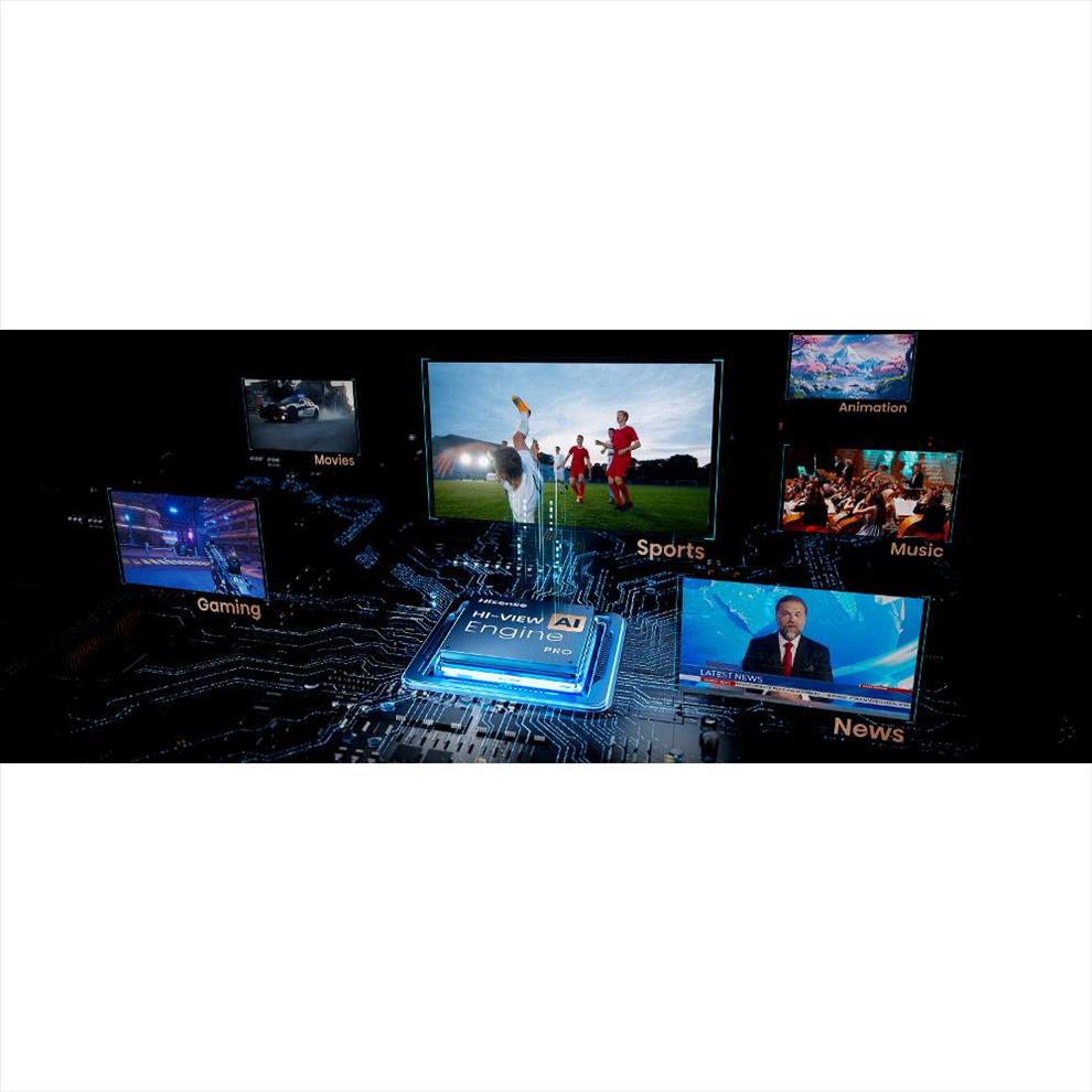 Aby byl obraz za všech okolností opravdu dokonalý, je televize Hisense vybavena celou řadou funkcí, které pohání umělá inteligence. Díky systému Hi-View AI Engine PRO se každý záběr na obrazovce mění v působivý vizuální zážitek. Analyzuje totiž obraz v reálném čase – rozpoznává odstíny pleti, hloubku i detaily a upravuje scénu, tak aby byla co nejrealističtější. Na sportovní fanoušky čeká režim AI Sports Mode, který si poradí s rychlými pohyby při sportovních přenosech – zajišťuje jasné zobrazení každého okamžiku a zvýrazňuje zvukový doprovod, včetně atmosféry na stadionu. Funkce AI 4K Upscaler se pak stará o to, aby i méně kvalitní obraz vypadal skvěle – i starší filmy vylepší téměř na úroveň 4K. A díky senzoru okolního světla AI Chroma Light Sensor se obraz přizpůsobí světelným podmínkám v místnosti, takže vždy vypadá dokonale, ať už je slunečné odpoledne nebo tma.