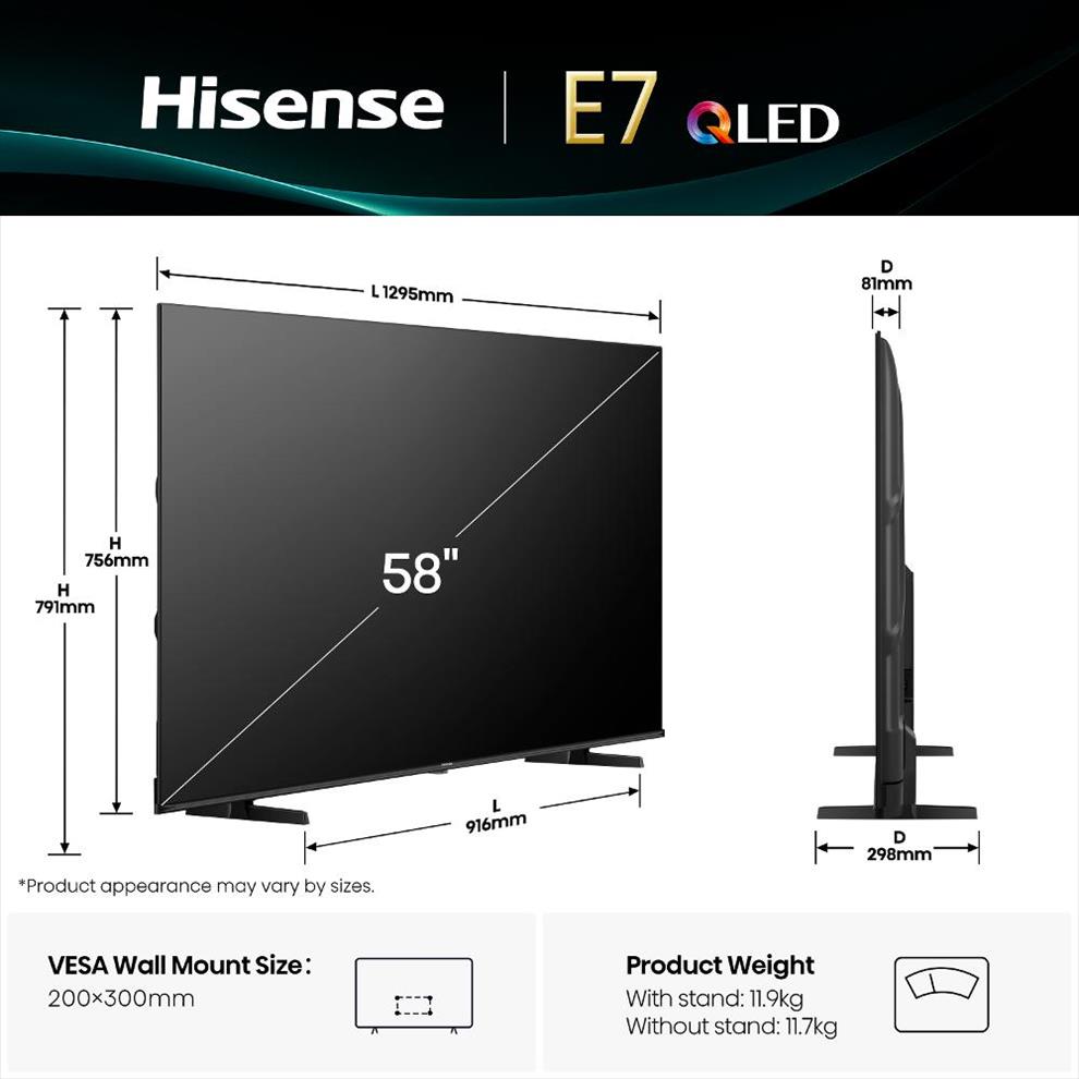 QLED SMART televize, úhlopříčka 58"/146 cm, OS VIDAA U9, rozlišení 4K - UHD 3840 × 2160, HDR10+, výkon reproduktorů 20W, Game Mode Plus, Dolby Vision/Atmos, USB, HDMI, CI+, LAN, Wifi, BT, OnePlay, YouTube, Netflix,