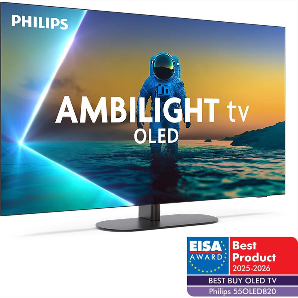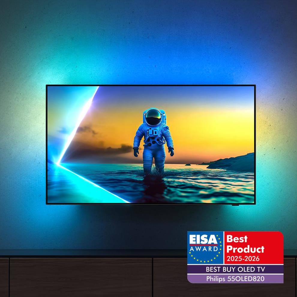 Televize – Google TV, OLED, 139cm, 4K Ultra HD, 100/120 Hz (144 Hz – herní režim), HDR10+, Dolby Vision, lokální stmívání, 4× HDMI, 2× USB, CI+, DLNA, Chromecast, HbbTV 2.0.4, herní režim, Ambilight, Google Assistant, Oneplay, VESA 300×300, repro 70 W, DTS:X, Dolby Atmos, Dolby Digital AC4, energetická třída G