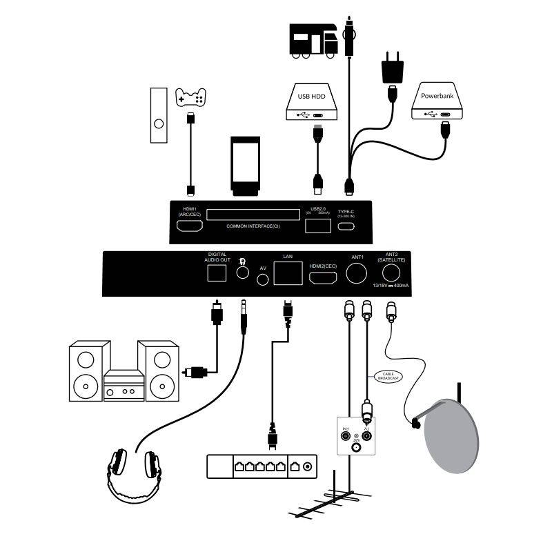 Univerzální televize se perfektně hodí pro zábavu na každém kroku. Můžete ji používat nejen ve své domácnosti, ale také na cestách. Na jejím těle se nachází konektor pro připojení 12V napájecího adaptéru, který lze zapojit do zásuvky v automobilech, karavanech, nebo třeba na lodích. Televizi tak můžete instalovat i do obytných vozů, abyste se nikdy nenudili a mohli si zpříjemnit večer po celodenní jízdě sledováním oblíbeného filmu.