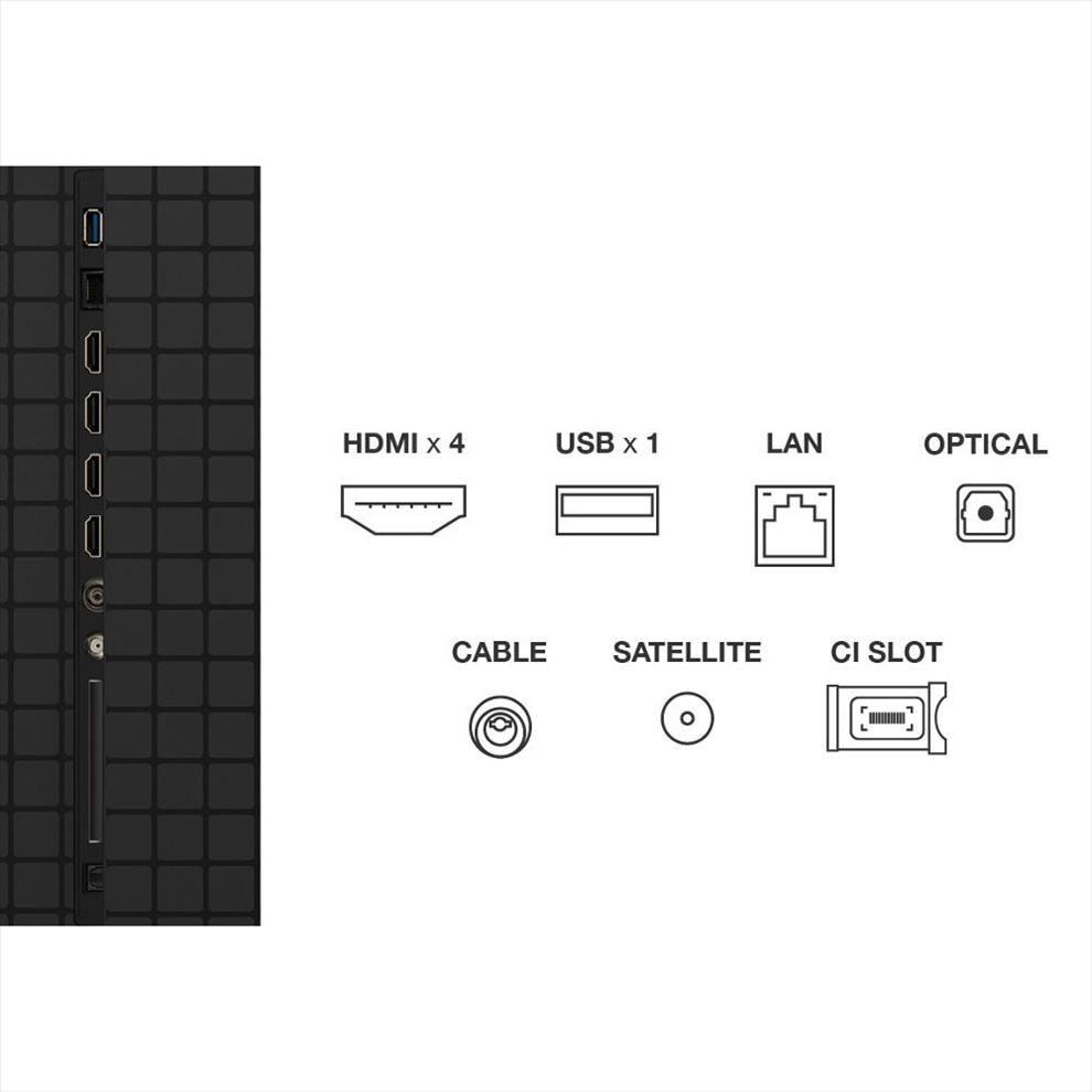 Uživatelům je k dispozici řada komfortních funkcí, jako je EKO senzor pro automatickou úpravu jasu podle okolního světla, časovač vypnutí a podpora HbbTV. Pro ochranu zraku televizor využívá technologie snižující modré světlo, potlačující blikání a stabilizaci pohybu MEMC. Design televize s titanovou barvou a bočními nohami se stylově hodí do moderních interiérů, a díky tenkému profilu s Micro-OD se hodí i pro montáž na stěnu s VESA roztečí 600 × 400. S úložištěm o kapacitě 64 GB je dostatek prostoru pro aplikace a systémová data.