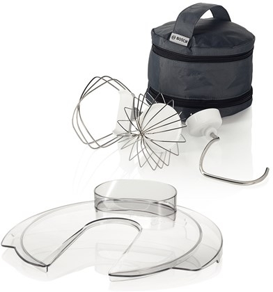 Důležitou součástí kuchyňských robotů je jejich příslušenství, které výrazně rozšiřuje možnost využití a typ provozu. Kromě nerezové míchací mísy o objemu 3,9 l vybavené transparentním víkem s plnícím otvorem, je součástí tohoto spotřebiče také hnětací hák a šlehací a míchací metly. Všechno příslušenství můžete navíc jednoduše nechat omýt ve vaší myčce a o vhodné skladování příslušenství se postará velmi praktická extra taštička.
