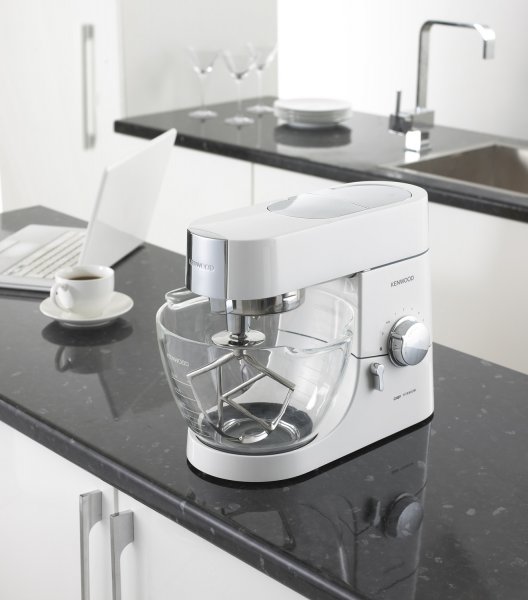 Limitovaná Edice! Kuchyňský robot Kenwood KMC 015 Chef Titanium v bílém elegantním laku má odolné kovové tělo a kovové součástky. Novinkou je mísa z tvrzeného skla s odměrnou stupnicí. Další výhodou jsou 4 výstupy pro připojení až 20 příslušenství.