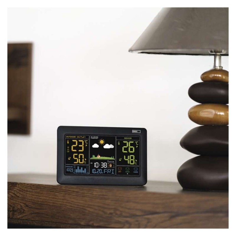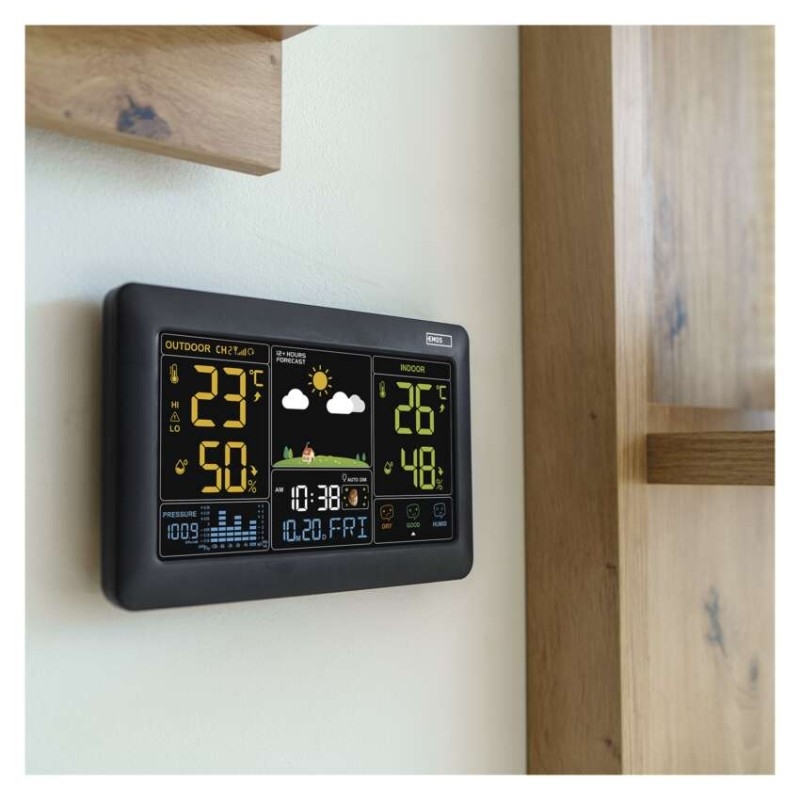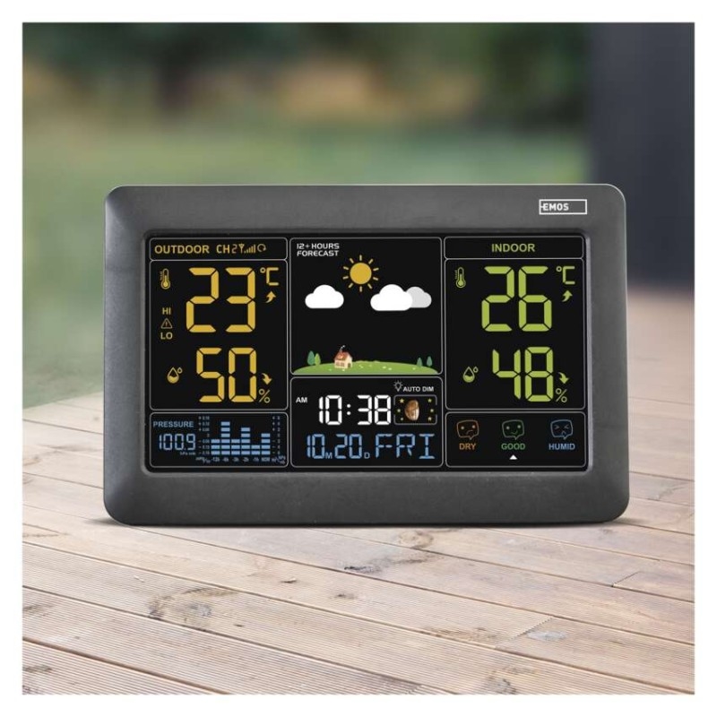 Stanice zobrazuje rovněž atmosférický tlak, fáze měsíce a nechybí ani graf historie tlaku za posledních 12 hodin. Poněkud nezvyklá, nicméně o to praktičtější je ikona upozorňující na nebezpečí námrazy.