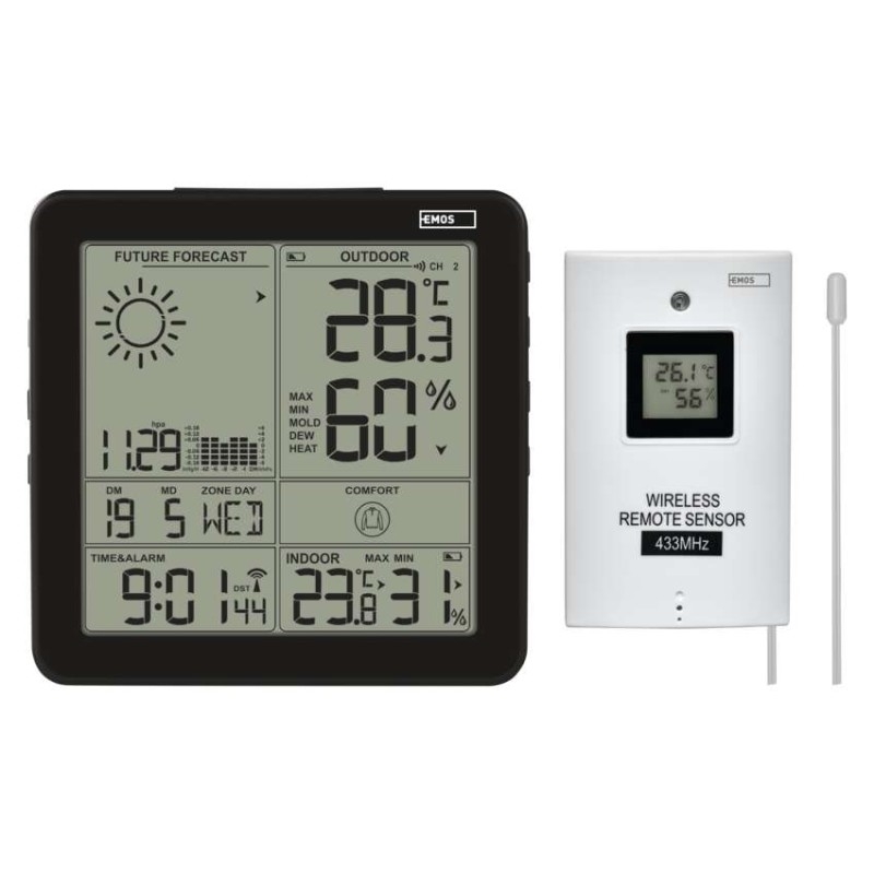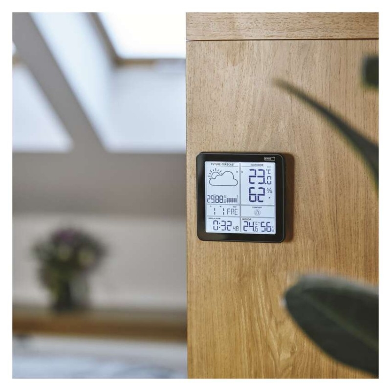 Kde se bude bezdrátová meteostanice nejlépe vyjímat? Nejvhodnější je samozřejmě meteostanici umístit tam, kde bude dostatečně na očích, zejména tedy před odchodem z domu. Praktická je proto možnost pověšení na zeď, například vedle vstupních dveří. Stejně tak lze meteostanici postavit na stůl, například vedle televize či na polici v kuchyni. Meteostanici lze také příznačně umístit na noční stolek, kde využijete i její další funkce, jako je budík, kalendář atd.