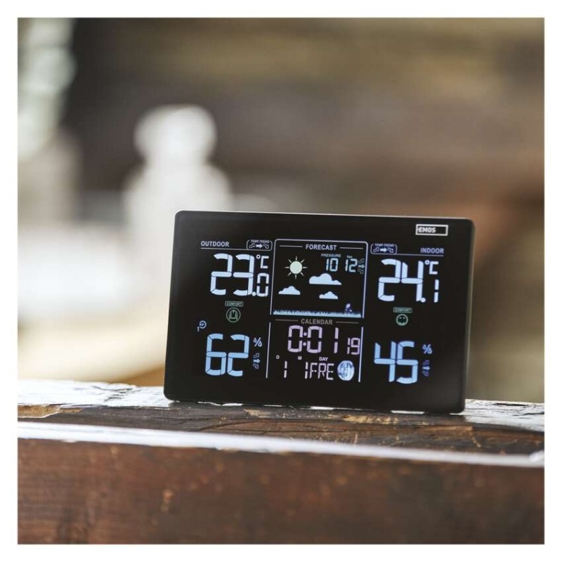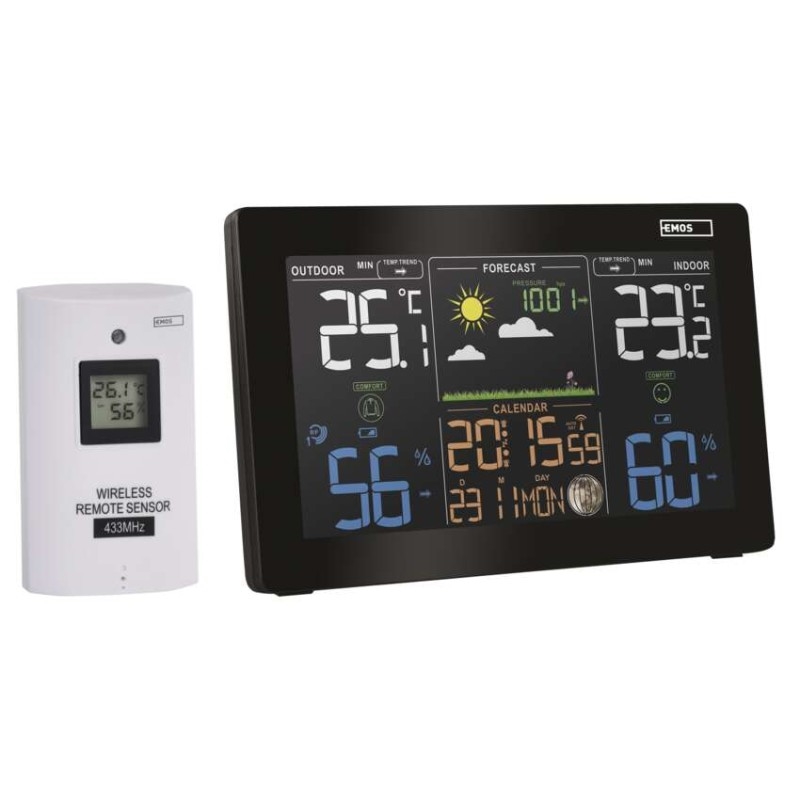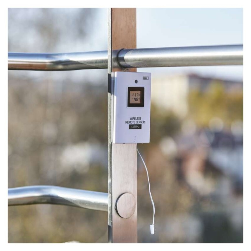 Potřebné hodnoty zajišťuje čidlo, které má dosah až 50 metrů. Celkem je možné použít až 3 čidla. Budete tak mít přehled o teplotě na různých místech, například ve sklepě, v zimní zahradě, na půdě apod. Nechybí ani barometr, který zprostředkovává údaje o atmosférickém tlaku.