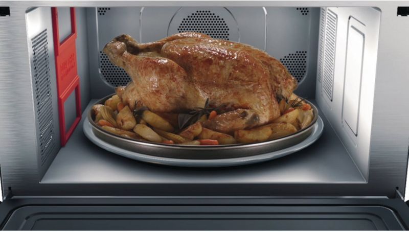 V této mikrovlnné troubě můžete vaše jídla připravit rychle a jednoduše. Objem mikrovlnné trouby je 33 l, samozřejmostí výbavy je i otočný talíř v průměru 36 cm. Výkon mikrovln je 1000 W, výkon grilu je 1200 W a výkon horkého vzduchu je 1700 W. Otevírání dvířek je klasické jako u troubě dolů.