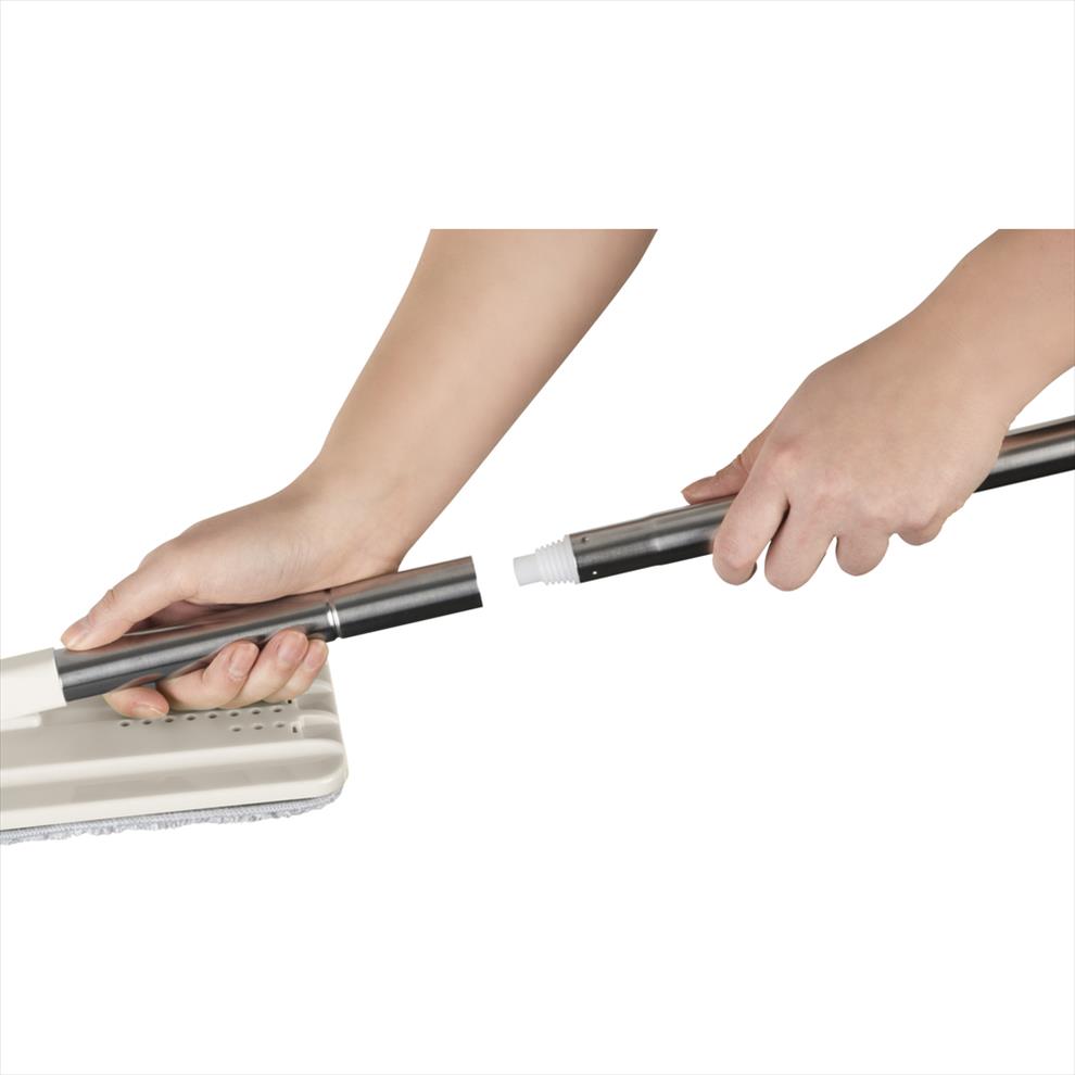 Mop obsahuje kbelík s oddělenou částí pro máchání a ždímání, 2x mop z mikrovlákna, třídílná šroubovací tyč – 128cm.