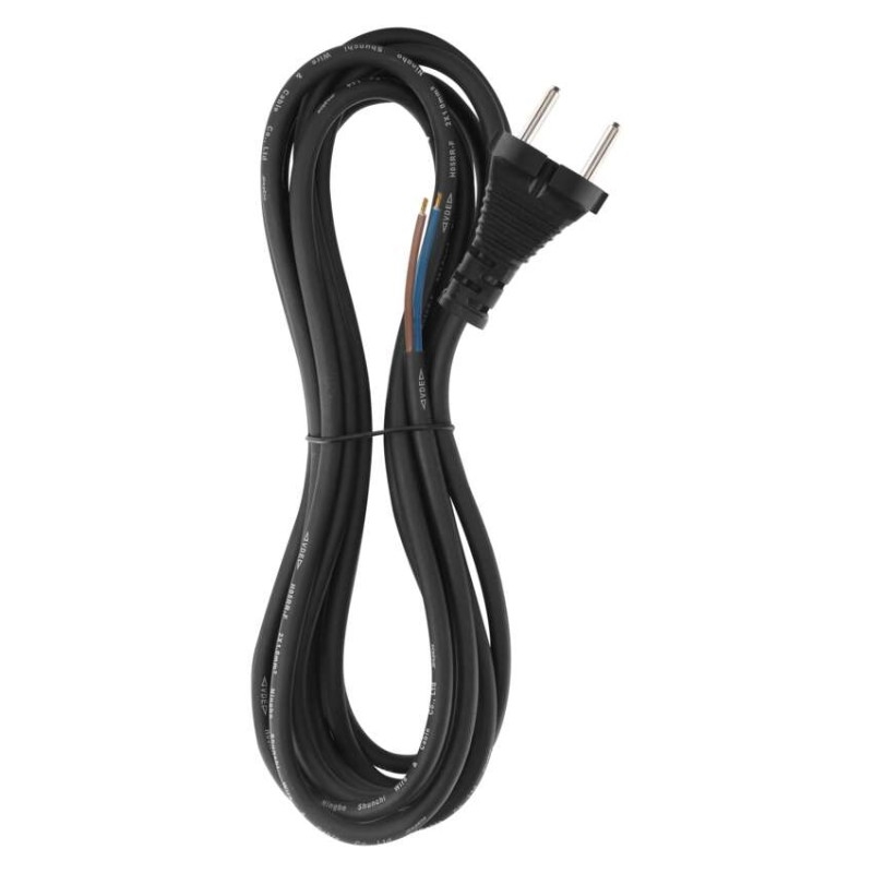 barva: černá|délka: 5 m|prodejní obal: 1 ks, závěs|průřez vodiče: 2× 1,0 mm2|typ: SY-10|typ izolace: guma|vodič: H05RR-F|vypínač: ne