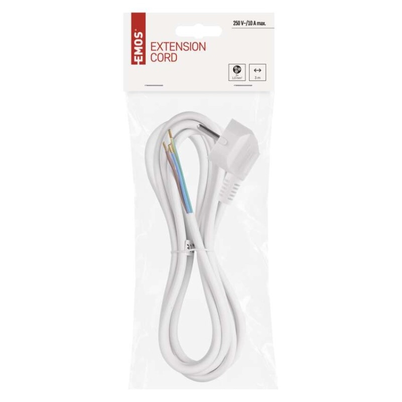 barva: bílá|délka: 3 m|prodejní obal: 1 ks, závěs|průřez vodiče: 3× 1,0 mm2|typ: KF-CR2 (HY005-F)|typ izolace: PVC|vodič: H05VV-F 3G|vypínač: ne