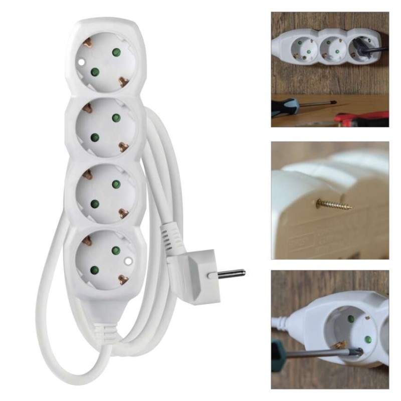 barva: bílá|délka: 1,5 m|dětské clonky: ano|jazyky aplikace: –|kompatibilita: –|materiál zásuvky a vidlice: plast|max. zátěž: 3 680 W|napětí/proud: 250 V~/16 A max.|notifikace do mobilní aplikace: ne|ovládání hlasovými asistenty: ne|počet zásuvek: 4× 2P + PE SCHUKO|podporované OS: –|přenosová frekvence: –|prodejní obal: 1 ks, závěs|protokol: –|typ izolace: PVC|USB výstup: neuvádí se|vodič: H05VV-F3G 1,5 mm2|vypínač: ne