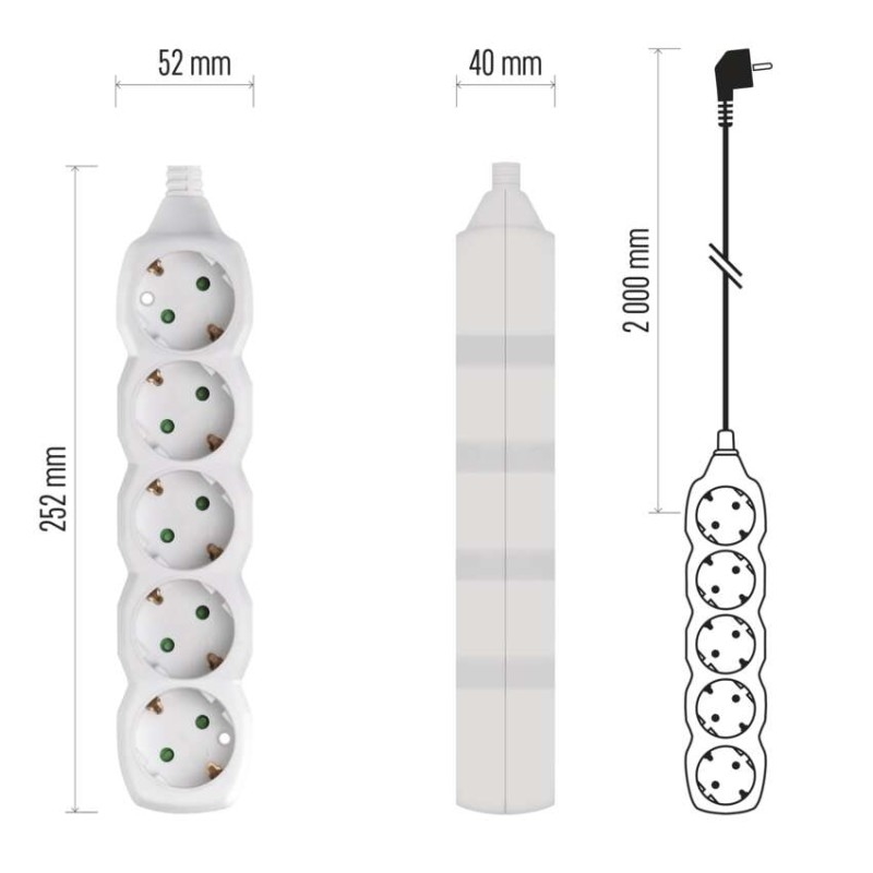 | počet zásuvek | 5× 2P + PE SCHUKO |
