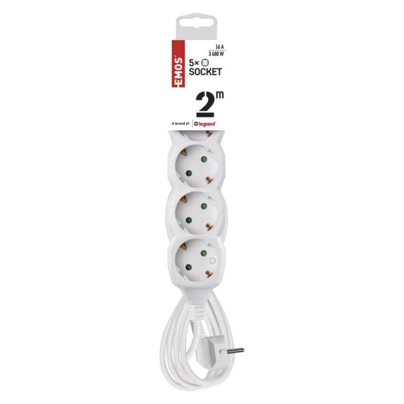 Prodlužovací přívod SCHUKO 2 m na 250 V~ slouží k prodloužení elektrické energie tam, kam pevná zásuvka nedosáhne. Max. zátěž 16 A/ 3 680 W.