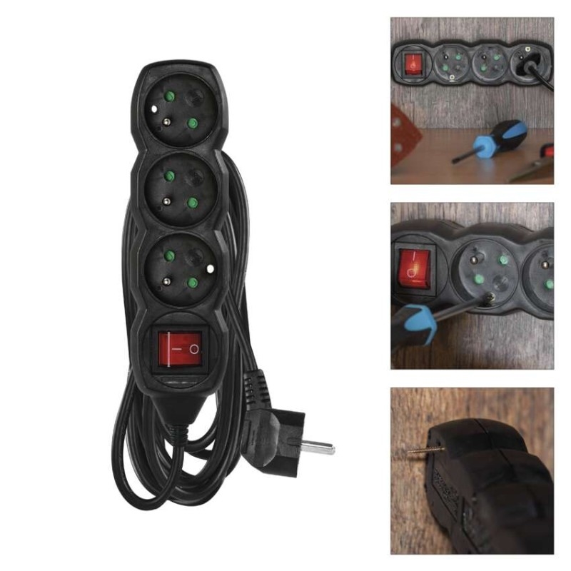 Při montáži na stěnu je nutné použít vrut se zápustnou hlavou PZ max. průměr 2,5–3 mm, délka 30–40 mm. V případě použití jiného průměru hrozí poškození plastové části otvoru. Pokud dojde k poškození plastové části otvoru, prodlužovací přívod nepoužívejte.