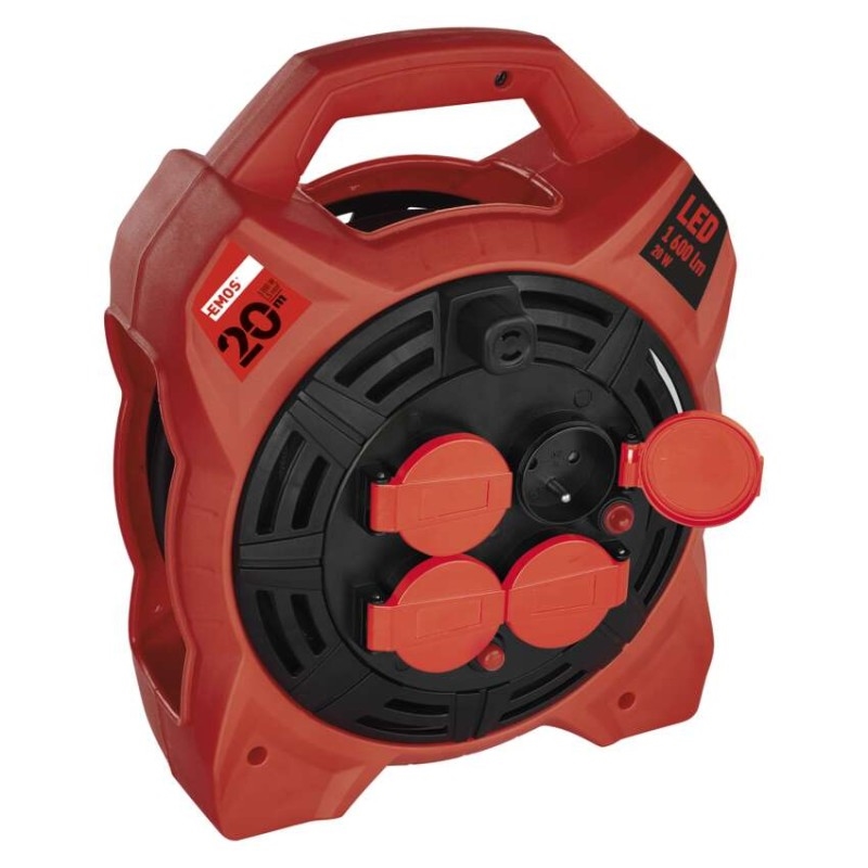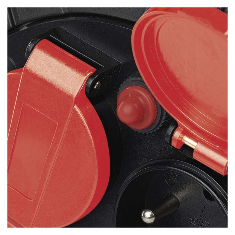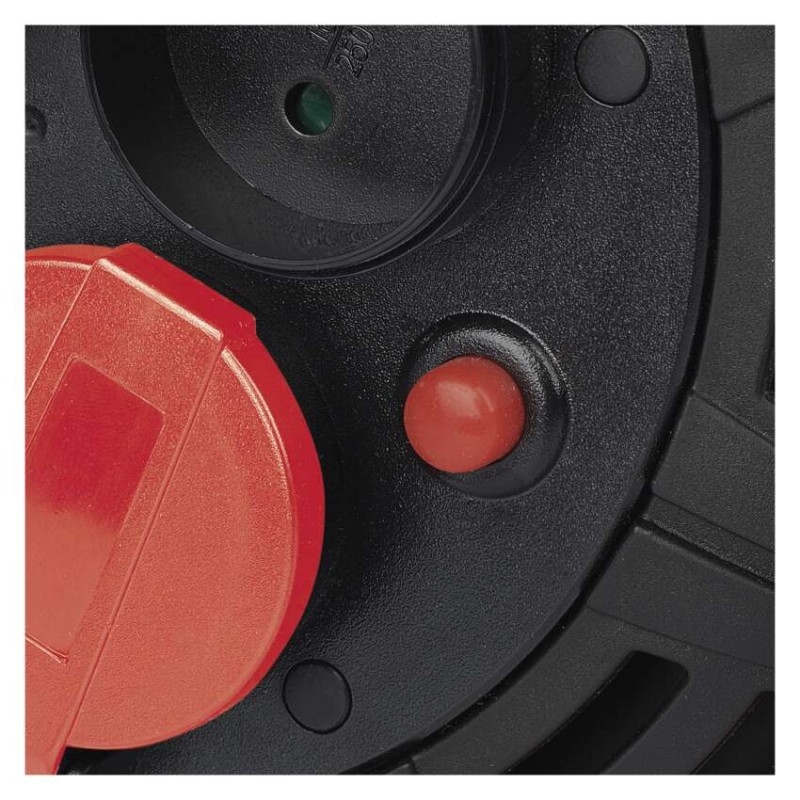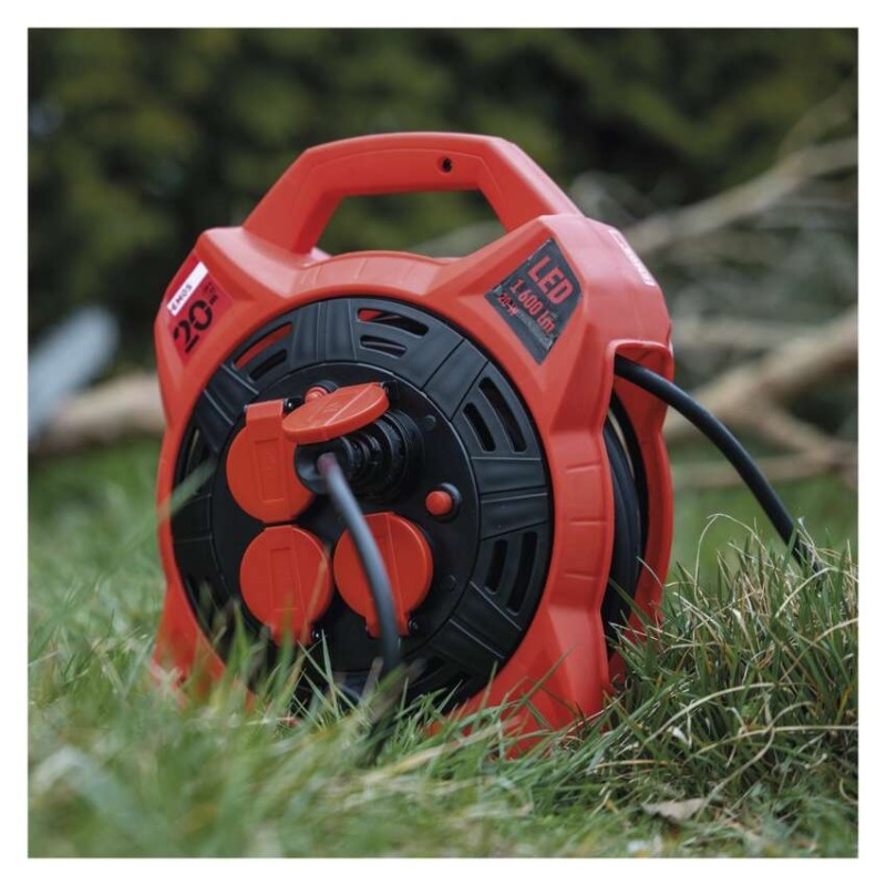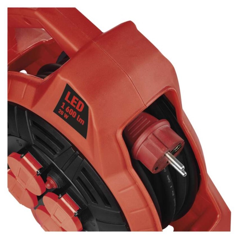 Naviják prodlužovacího kabelu s LED reflektorem umožňuje zapojení až 4 elektro zařízení současně. Zásuvky odpovídají napětí 230 V~. Tento profesionální prodlužovací kabel je vybaven tepelnou pojistkou, která bezpečně ochrání všechny vaše zařízení před přehřátím. Pokud se teplota prodlužovacího kabelu uvnitř bubnu dostane nad stanovenou mez tepelné pojistky, obvod se okamžitě přeruší. Díky této pojistce nedojde k poškození zařízení a vás ochrání před nebezpečným úrazem.