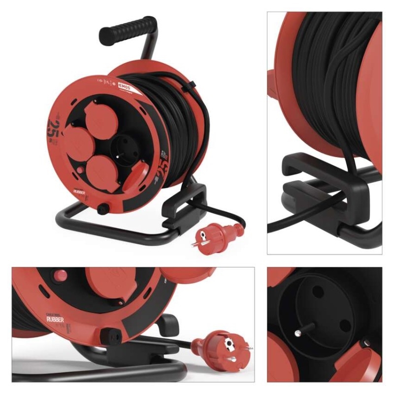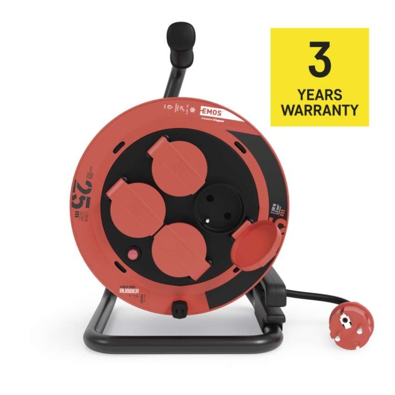 EMOS Venkovní prodlužovací kabel na bubnu 25 m / 4 zásuvky / guma / 230 V / 1,0 mm2 / IP44