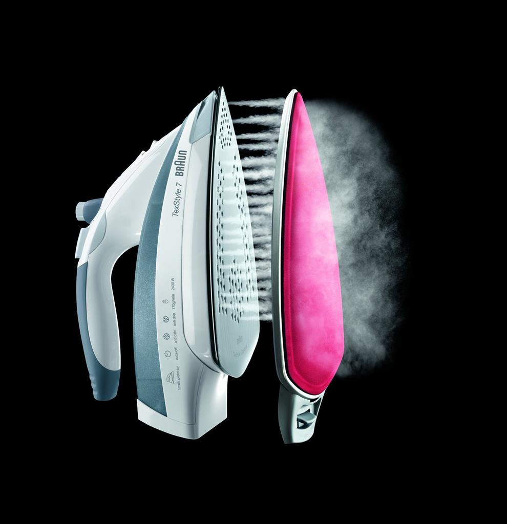 • jedinečná konfigurace parních otvorů zabezpečuje uvolňování silného proudu páry blíže ke špičce žehlící plochy – snadno vyžehlí hůře přístupné oblasti