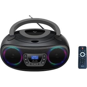 Boombox. Denver TDB 212GR. . DAB+/FM tuner. LCD displej. LED osvětlení okolo reproduktorů. Bluetooth 5.0. CD přehrávač. USB vstup - podpora MP3. AUX vstup 3,5 mm. . Výstup pro sluchátka. Dálkové ovládání. Max. výkon: 2x 18W (2x 1,8W RMS). Napájení adaptérem 230 V nebo 4 x 1,5V alkalické baterie typu C (nejsou součástí balení). Rozměry: 26,1 x 22,6 x 13,2 cm (šxhxv)