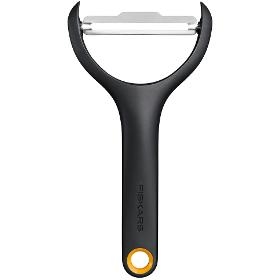 Škrabka. Fiskars Škrabka ve tvaru Y (1079908). . Otočná čepel. Ve tvaru Y. Pro loupání ovoce a zeleniny. Snadná údržba. . Barva černá/oranžová