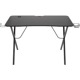 Herní stůl. Genesis HOLM 200 RGB. . Tvar stolu: Rovný. Hloubka desky: 60 cm. Šířka desky: 113 cm. Minimální výška stolu: 75 cm. Maximální výška stolu: 75 cm. . Vlastnosti: Držák na nápoje, Háček na sluchátka, Nastavitelné světelné efekty, Systém pro správu kabelů, USB hub. Podsvícení: RGB. Provedení nohou: S nožičkami. . Materiál konstrukce: Kov. Materiál desky: MDF. Rozměry (VxŠxH): 75 x 113 x 60 cm. Barva: Černá.