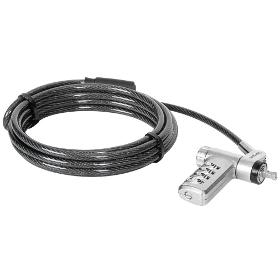Zámek pro notebook. Targus DEFCON Resettable Combi Cable Lock. . Kompatibilita: Kensington® Nano, Kensington® T-Bar™, Noble® WEDGELOCK®. Typ zámku: kombinační. Délka: 2 m. Kombinaci zámku lze změnit. . Rozměry (VxŠxH): 4,8 x 1,8 x 3,48 cm. Hmotnost: 150 g. Materiál: pozinkovaná ocel. Barva: stříbrná/černá.
