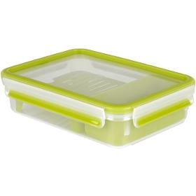 Box na potraviny. Tefal Masterseal To Go K3100312 1,2 l. . Obdélníková dóza s objemem 1,2 l. Systém uzavírání se 4 klipy po stranách. Bezpečné pro použití v mikrovlnné troubě, mrazničce a myčce. V zelené barvě
