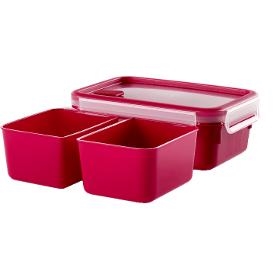 Box na potraviny. Tefal Masterseal Micro K3102312 1,0 l. . Obdélníková dóza s objemem 1,0 l. Systém uzavírání se 4 klipy po stranách. Funkce ohřívání jídla v mikrovlnné troubě pomocí ventilu. Pevně vlisované těsnění FreshSeal. Bezpečné pro použití v mikrovlnné troubě, mrazničce a myčce. V červené barvě