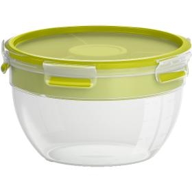 Box na potraviny. Tefal Masterseal To Go N1071310 2,6 l. . Dóza na salát objemem 2,6 l. Systém uzavírání se 4 klipy po stranách. Oddělené přihrádky na zálivky a dresinky. Praktická lžíce a ergonomická rukojeť. Vodotěsný design. V zelené barvě