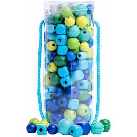 Korálky. WOODY Korálky v tubě tyrkysová. . Tuba obsahuje velké množství klasických i soustružených korálků. Součástí jsou také tenké tkanice s koncovkou k provlékání. Vhodné pro rozvoj jemné motoriky. Praktické uzavíratelné balení na cesty. . Věk 3+. Rozměry 6 x 15,5 cm. . Barva tyrkysová