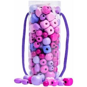 Korálky. WOODY Korálky v tubě růžová. . Tuba obsahuje velké množství klasických i soustružených korálků. Součástí jsou také tenké tkanice s koncovkou k provlékání. Vhodné pro rozvoj jemné motoriky. Praktické uzavíratelné balení na cesty. . Věk 3+. Rozměry6 x 15,5 cm. . Barva růžová