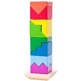 Hlavolam. WOODY Hlavolam Skládací věž. . Věž se skládá z různobarevných dílů, které navíc mají i rozdílné tvary. Při správném složení do sebe zapadnou a vytvoří věž. Rozvijí představivost a logické myšlení. . Věk 2+. Rozměry (VxŠxH) 27 x 9,5 x 9,5 cm
