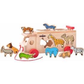 Vkládačka. WOODY Kamion s vkládacími tvary. . Vkládací kamion se zvířátky učí dítě znát tvary zvířátek a vkládat je do patřičných otvorů. Hračka je určena i pro rozvoj motoriky. . Věk 2+. Rozměr 24 x 29 cm