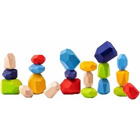 Motorická balanční hračka. WOODY Balanční hra 21ks. . Motorická balanční hračka ze dřeva. Děti mají za úkol postavit na sebe co nejvíce dřevěných kamenů tak, aby z nich věž nespadla. Kameny jsou speciálně zpracované. Plošky, na kterých stojí, jsou stabilní pouze v konkrétních polohách pro konkrétní plošky dalších kamenů. Proto je třeba využít nejen motorické, ale i logické schopnosti a kombinatoriku. . 21 kamenů. . Věk 3+