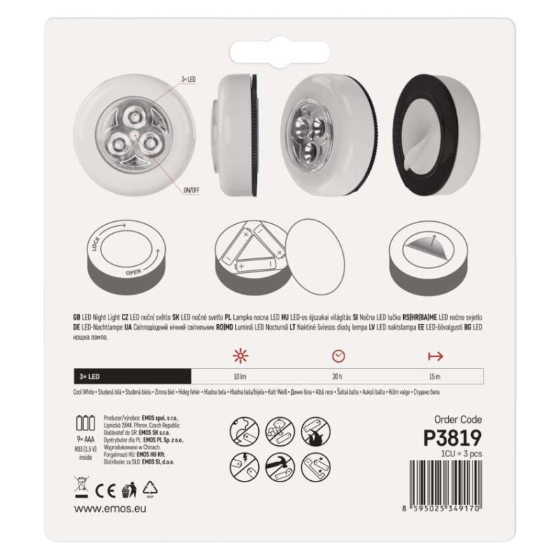 EMOS 3× Samolepicí LED světlo P3819, 10 lm, 3× AAA | DNO elektro
