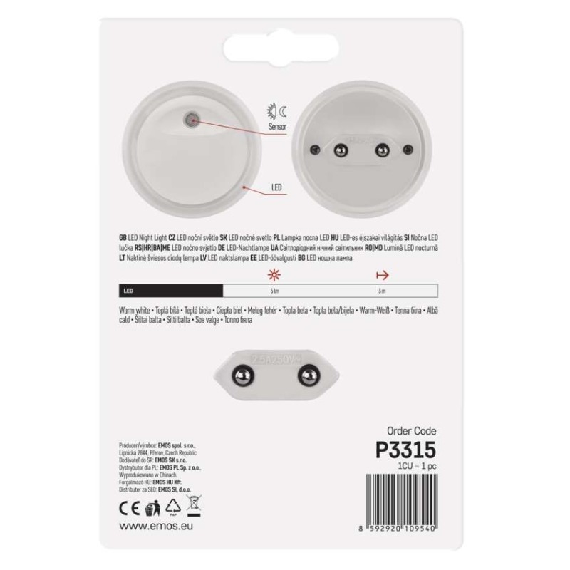 Noční světlo EMOS P3315 se stane skvělým pomocníkem menších dětí, které se nebudou bát ve svých pokojíčcích usínat potmě. Teplé bílé světlo jim pomůže usnout a nebude je rušit ze spánku. Své uplatnění najde i na chodbách, schodištích a mnoha jiných temných zákoutích domu či bytu. Tlumené nevtíravé světlo usnadní orientaci, zpříjemní atmosféru a v některých situacích také může zastoupit hlavní světlo.