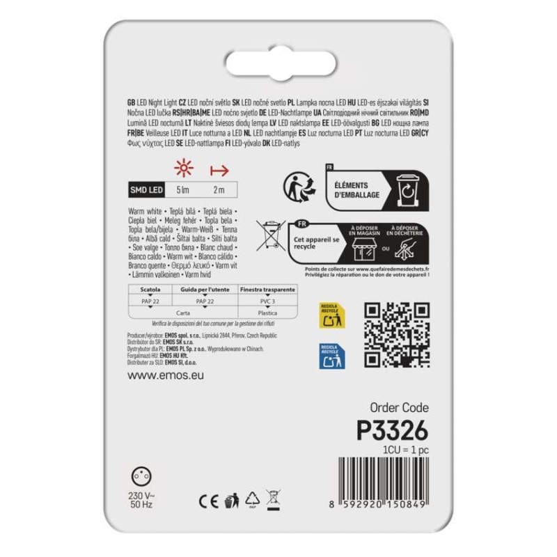 EMOS LED noční světlo P3326 do zásuvky | DNO elektro