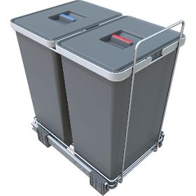 Odpadkový koš vestavný. PF01 44B2. . Výsuvný odpadkový koš Ecofil PF01 44B2 s pojezdy. Koše se vysouvají z pevně zabudovaných pojezdů ve skříňce po otevření dvířek a vytahování je plné, takže se pohodlně dostanete ke každé nádobě. Každý koš lze rozdělit na dva. Ke každému koši víko. Kvalitní použité materiály. Velké množství variant rozměrů a objemů nádob. Velice jednoduchá údržba a čištění. Snadná montáž