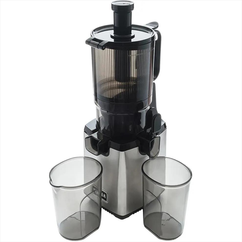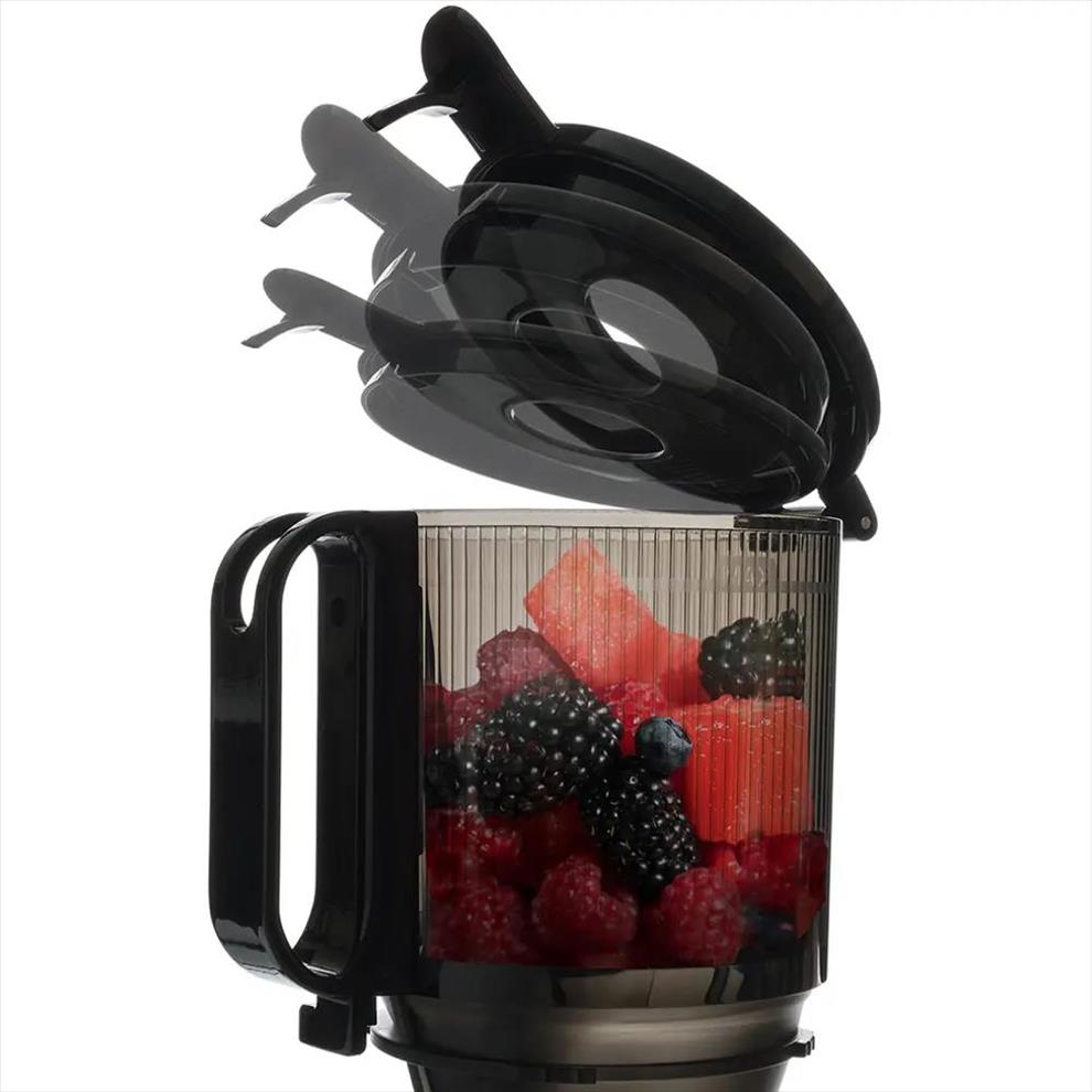 Šnekový odšťavňovač, příkon 250 W, lisování za studena, plnící otvor o průměru 13 cm, 40-65 otáček za minutu, nádoba z TRITAN materiálu, minimální suchý odpad, funkce zpětného chodu proti ucpání