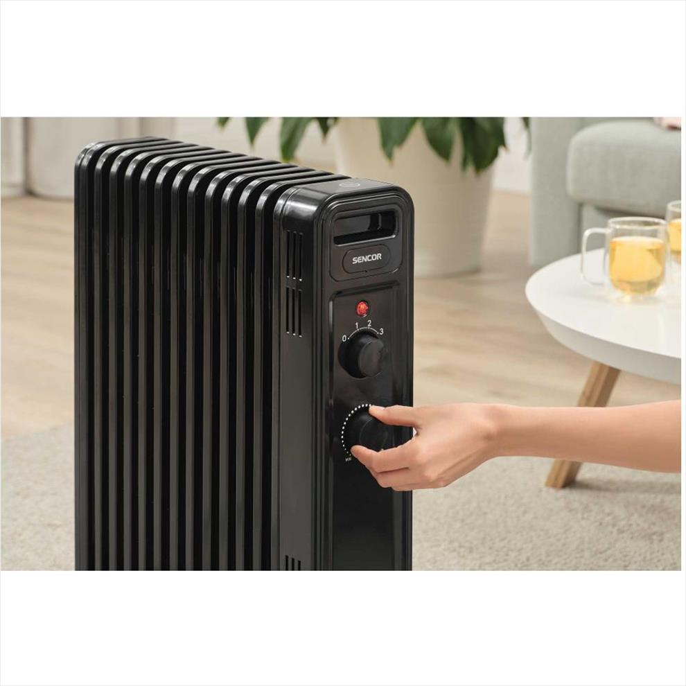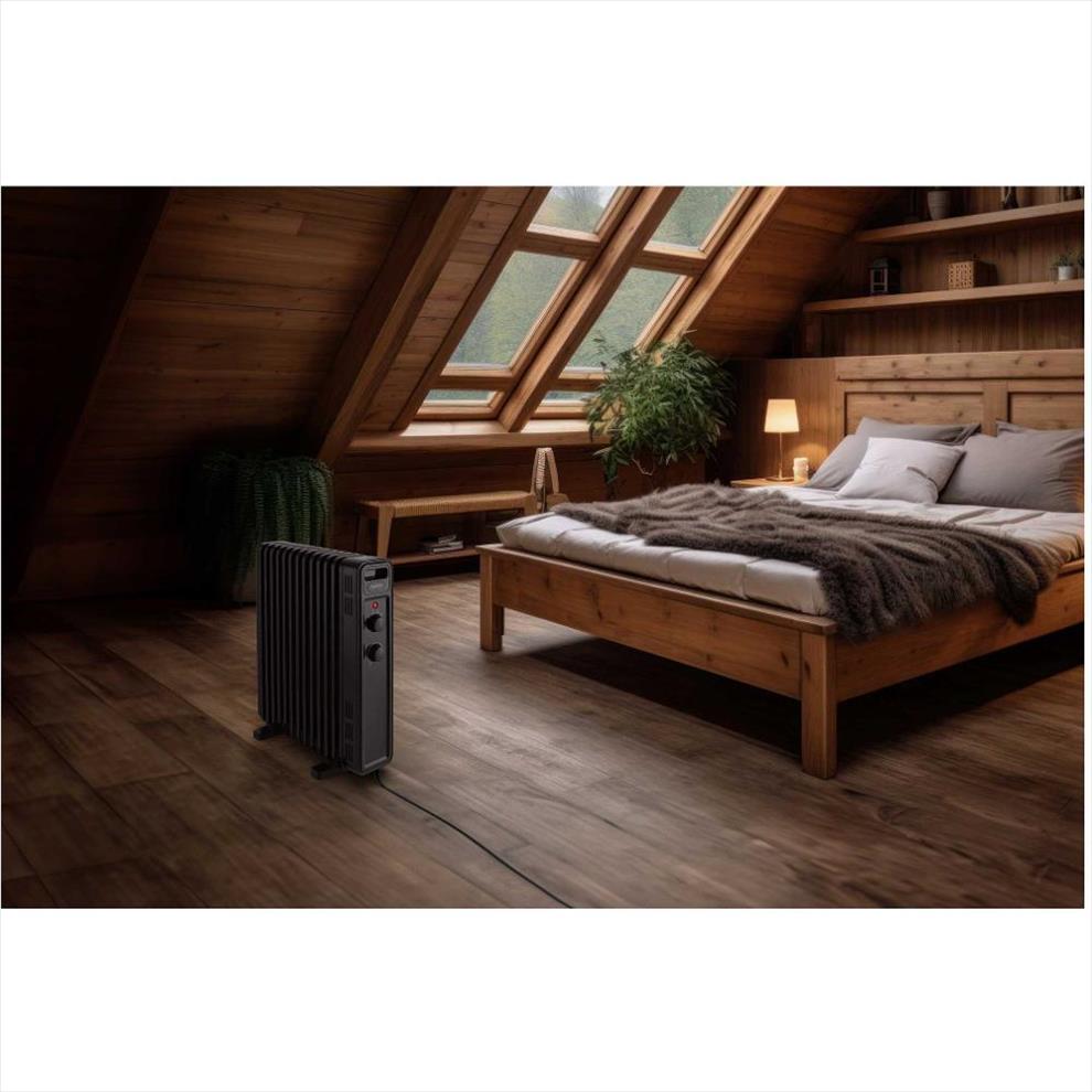 Olejový radiátor, 2 500 W, 13 tponých článků, větší topná plocha, vyšší rychlost ohřevu, dvojitá ochrana proti převrhnutí, pojistka proti zamrznutí, délka napájecího kabelu: 1,5 m