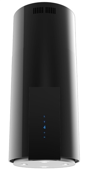 Ostrůvkový komínový odsavač par v černém provedení, 650 m3/hod, energetická třída B, ovládací panel s tlačítky, motor eco, 3 volitelné stupně odsávání , nastavitelná výška od 95,8cm do 118,8 cm, průměr odtahu 150mm,