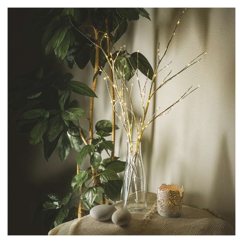 barva drátu: bílá|barva světla: teplá bílá|časovač: ano|dálkový ovladač: ne|délka přívodu: 0,5 m|krytí: IP44|materiál: plast|počet LED: 100|použití: venkovní i vnitřní|příkon: 1,5 W|prodejní obal: 1 ks, krabice|produkt: větve|rozměr: 60 cm|typ napájení: baterie 3× AA (není součástí balení)|vstupní napětí: –|výstupní napětí: 4,5 V DC|záruční doba: 2 roky|zdroj svícení: LED|životnost: 10 000 hodin