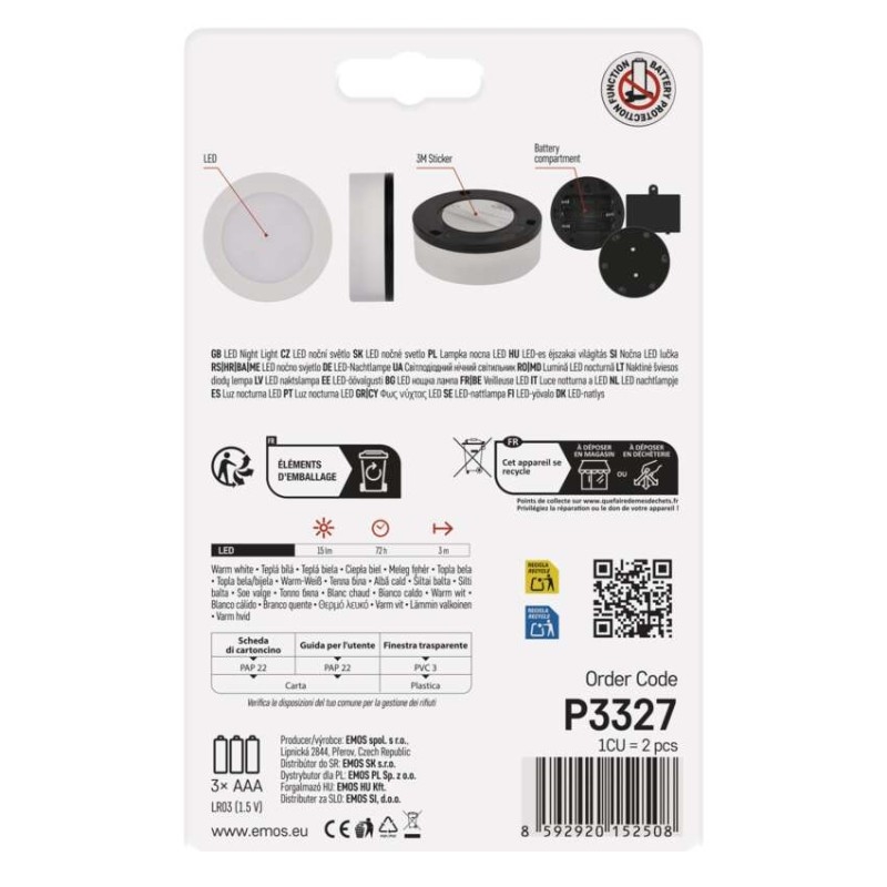 EMOS LED noční světlo P3327 na 3× AAA, 2 ks | DNO elektro