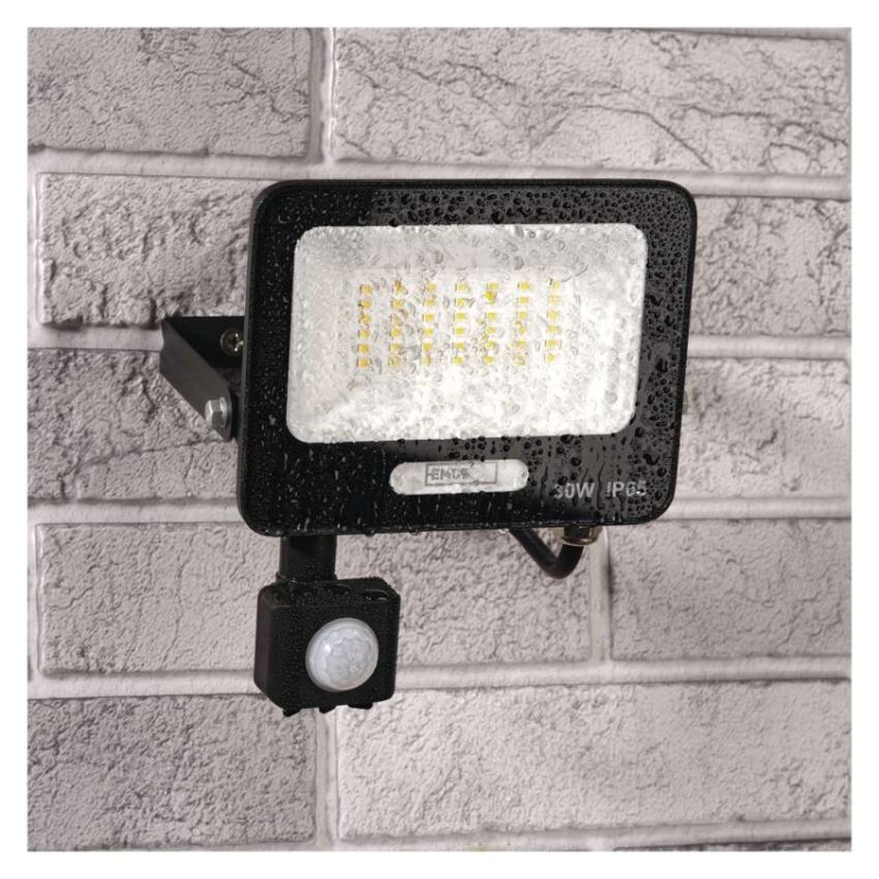 EMOS LED reflektor GLARO s pohybovým čidlem, 30 W, černý, IP54, 3000 lm, neutrální bílá