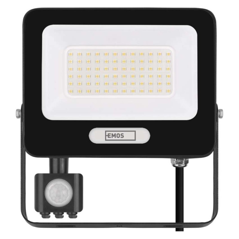 EMOS LED reflektor GLARO s pohybovým čidlem, 50 W, černý, IP54, 5000 lm, neutrální bílá | DNO elektro
