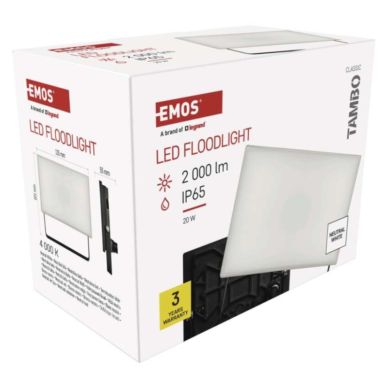 EMOS LED reflektor TAMBO, 20 W, 2000l m, IP65, černý