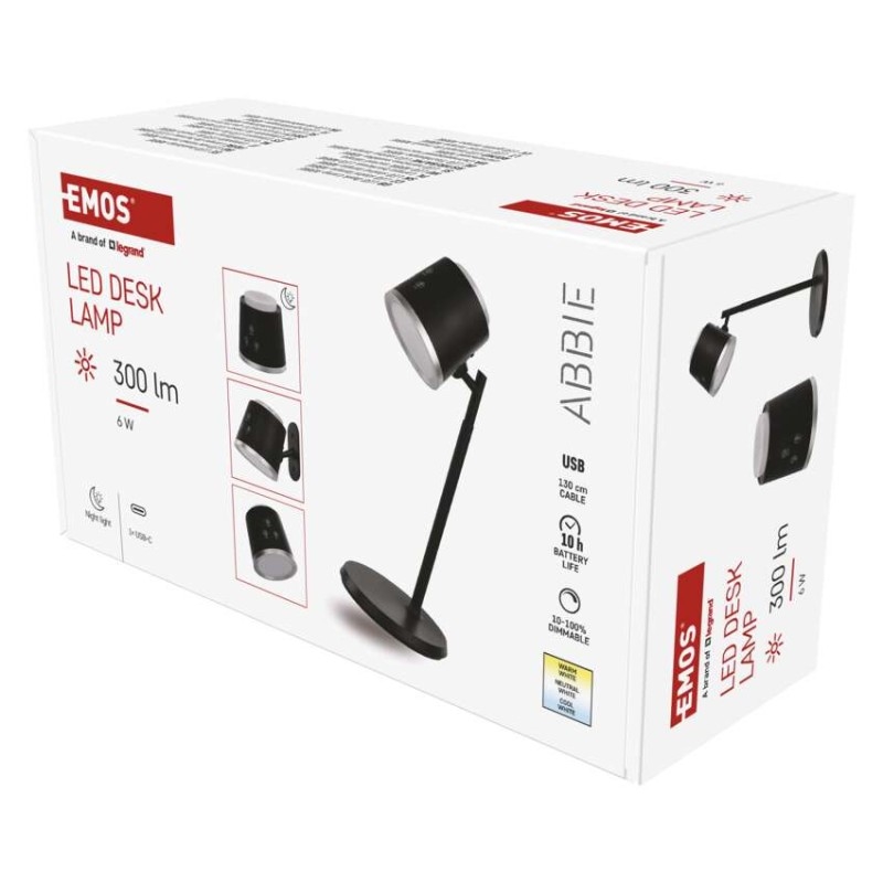 EMOS LED stolní lampa ABBIE nabíjecí, černá | DNO elektro