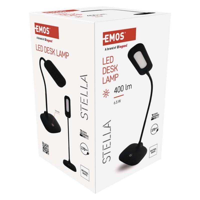 barva: černá|barva světla: neutrální bílá|činitel stárnutí: neuvádí se|čip LED: SMD|délka přívodního kabelu: 1,7 m|energetická třída: A+|energetická třída (od 1.9.2021): neuvádí se|index podání barev (CRI): Ra >80|integrovaná nabíjecí baterie: ne|krytí: IP20|materiál: kov, plast + guma|max. výkon: 6,5 W|napájecí zdroj: 12 V/400 mA|napájecí zdroj součástí balení: ano|napětí: 100–240 V|obsah rtuti: <0 mg|patice (uchycení žárovky): neuvádí se|počet LED: neuvádí se|počet spínacích cyklů: 15 000|příkon: 6,5 W|prodejní obal: 1 ks, krabice|rozměr: 160 × 550 × 345 mm|rychlost náběhu na 100 %: 0 s|stmívání: ano|světelný tok: 400 lm|teplota chromatičnosti: 4 000 K|typ napájení: síť|účiník: neuvádí se|USB port: ne|životnost: 30 000 hodin