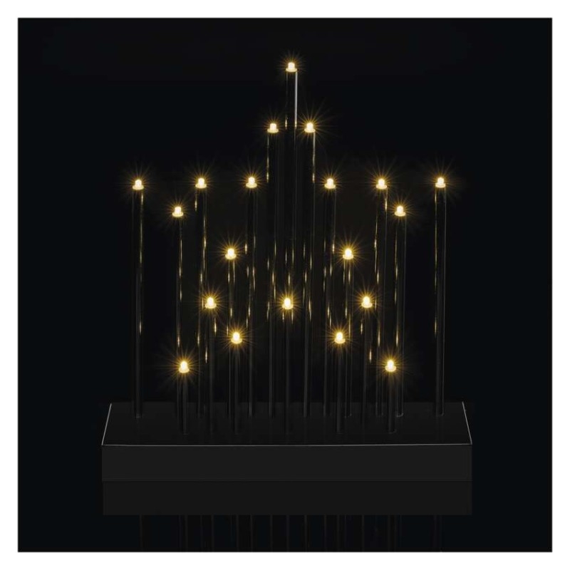 barva drátu: neuvádí se|barva světla: teplá bílá|časovač: ano|dálkový ovladač: ne|délka přívodu: neuvádí se|krytí: IP20|materiál: plast|počet LED: 20|použití: vnitřní|příkon: 1,2 W|prodejní obal: 1 ks, krabice|produkt: svícen|rozměr: 25 × 27,5 cm|typ napájení: baterie 3× AA (není součástí balení)|vstupní napětí: neuvádí se|výstupní napětí: 4,5 V DC|záruční doba: 2 roky|zdroj svícení: LED|životnost: 10 000 hodin