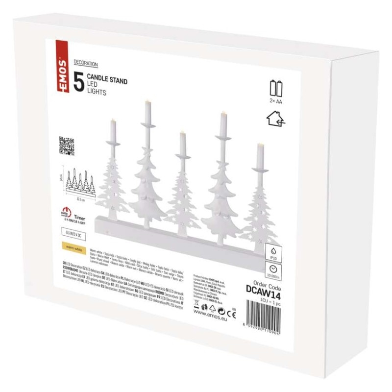 EMOS LED svícen – vánoční stromy se svíčkami, 24 cm, 2x AA, vnitřní, teplá bílá, časovač